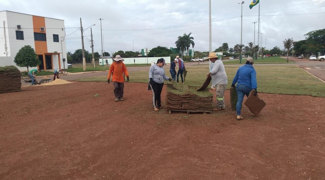 Santa Carmem: canteiros de avenidas recebem plantio de grama