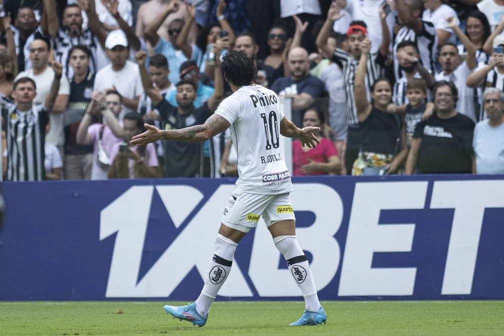 Ricardo Goulart comemora gol da virada do Santos contra o Água Santa — Foto: Diogo Reis
