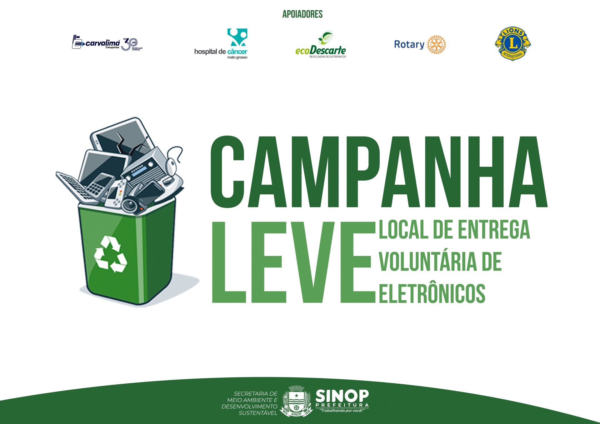 A Secretaria de Meio Ambiente e Desenvolvimento Sustentável de Sinop dilatou em mais alguns dias o prazo para recolhimento de eletroeletrônicos e eletrodomésticos inservíveis em Sinop. A campanha que contribuirá com o Hospital do Câncer de Mato Grosso encerrará na sexta (8). Até o momento cerca de 8 toneladas de materiais já foram recebidos.