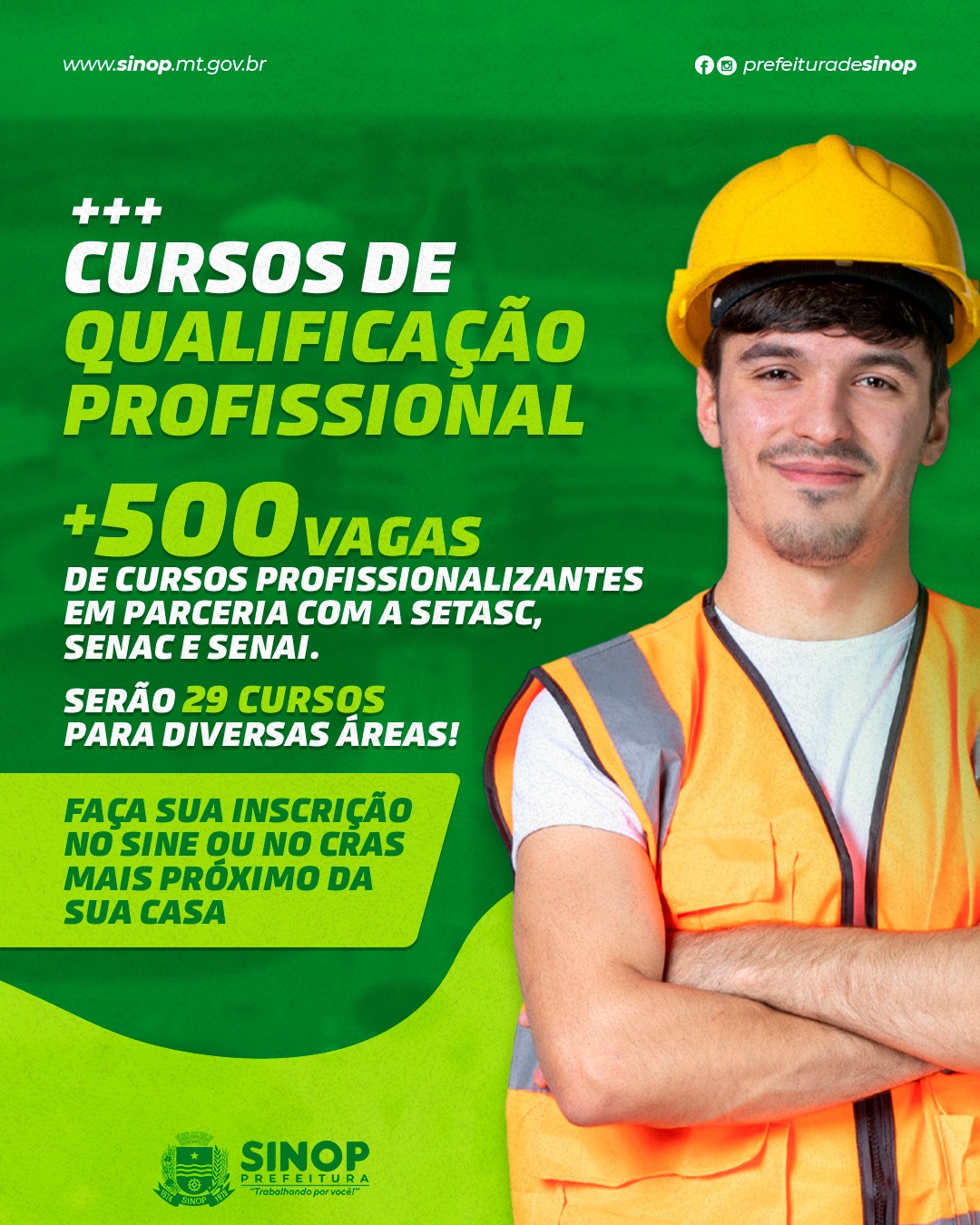 Por meio da pasta do Trabalho, a Secretaria de Assistência Social disponibilizará este ano mais de 500 vagas para cursos profissionalizantes em Sinop, sendo elas divididas em 29 cursos para diversas áreas de atuação. A capacitação será realizada em parceria com a Secretaria de Estado de Assistência Social e Cidadania, Senac e Senai.
