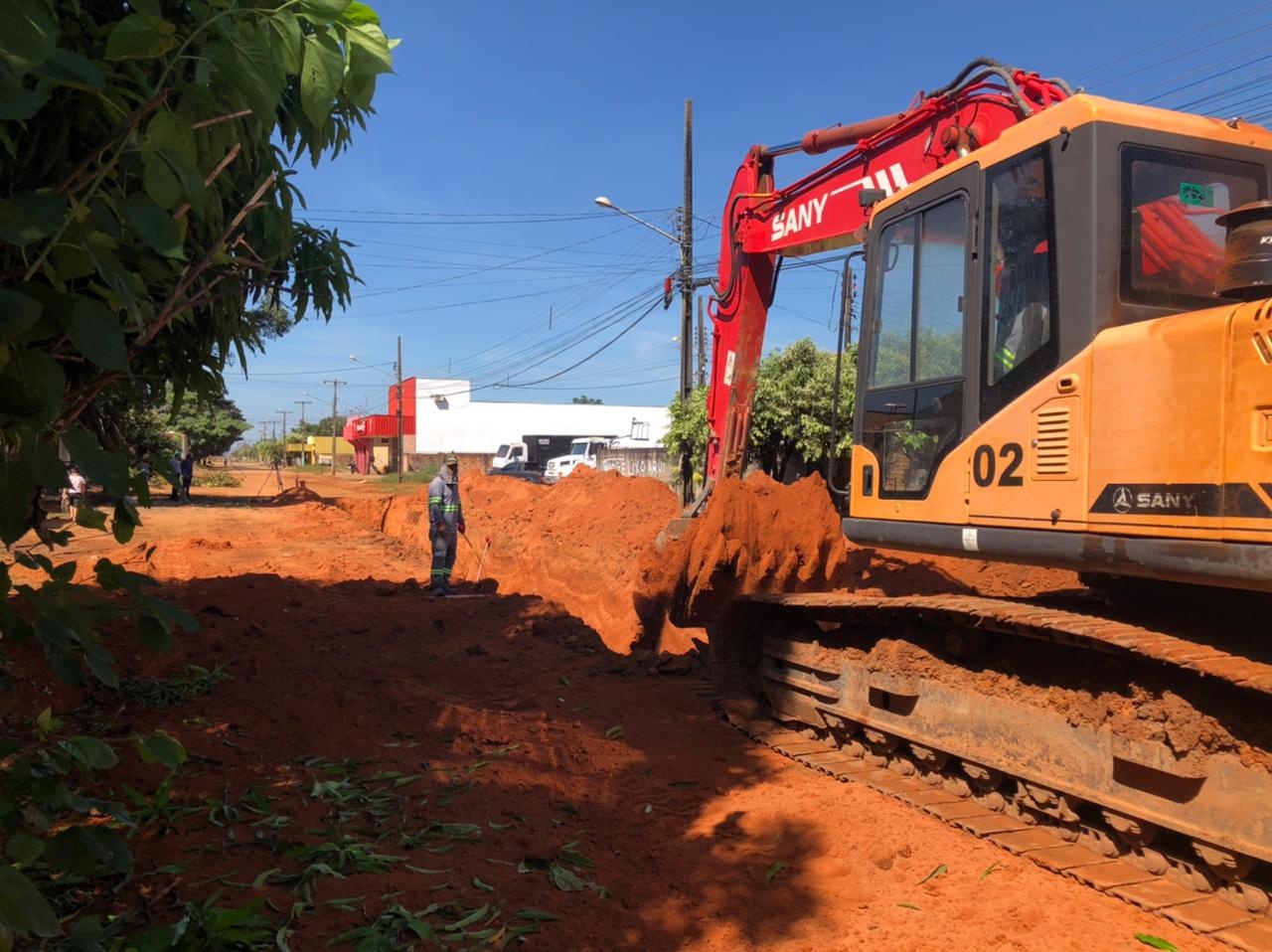 No canteiro de obras, a execução dos serviços de drenagem está avançando em ritmo acelerado. Os maquinários tem realizado nessa etapa, a escavação das ruas e avenidas e instalação das tubulações de ligação da rede de drenagem das águas pluviais. Posteriormente, nas próximas etapas, devem ser executados os serviços de rebaixamento de solo para compactação de leito e subleito, para posterior recebimento da massa asfáltica.