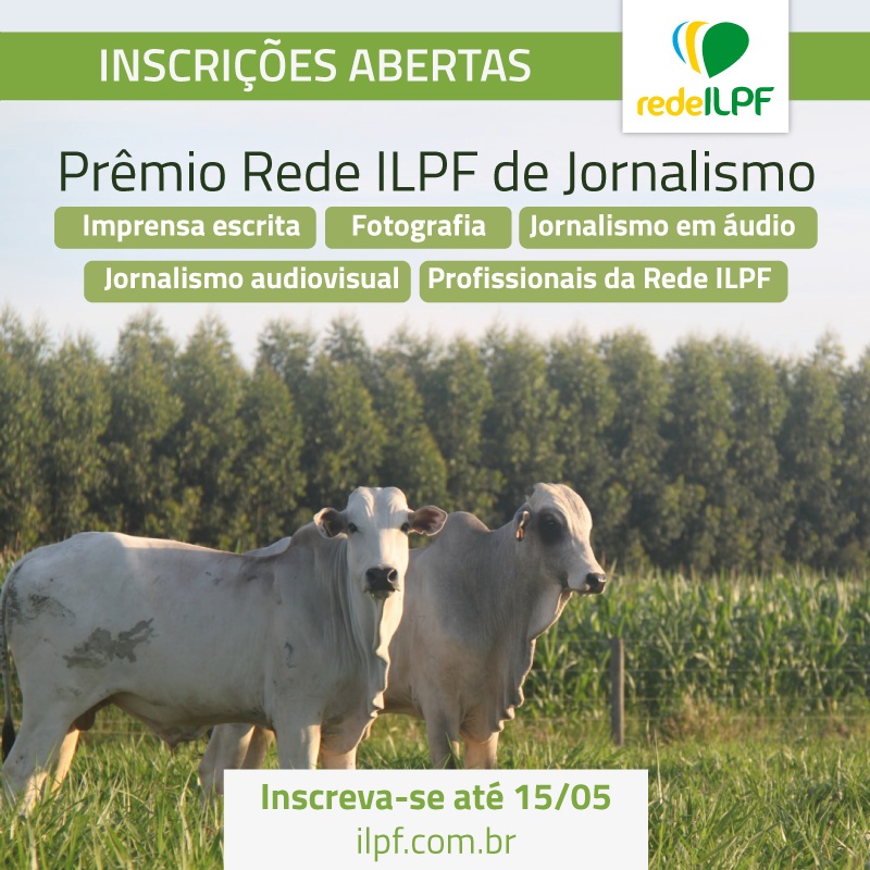 Estão abertas até o dia 15 de maio as inscrições para o Prêmio Rede ILPF de Jornalismo. O concurso irá premiar trabalhos jornalísticos sobre sistemas de integração lavoura-pecuária-floresta em cinco categorias, sendo quatro destinadas a profissionais da imprensa e uma a profissionais das instituições que compõem a Associação Rede ILPF.
