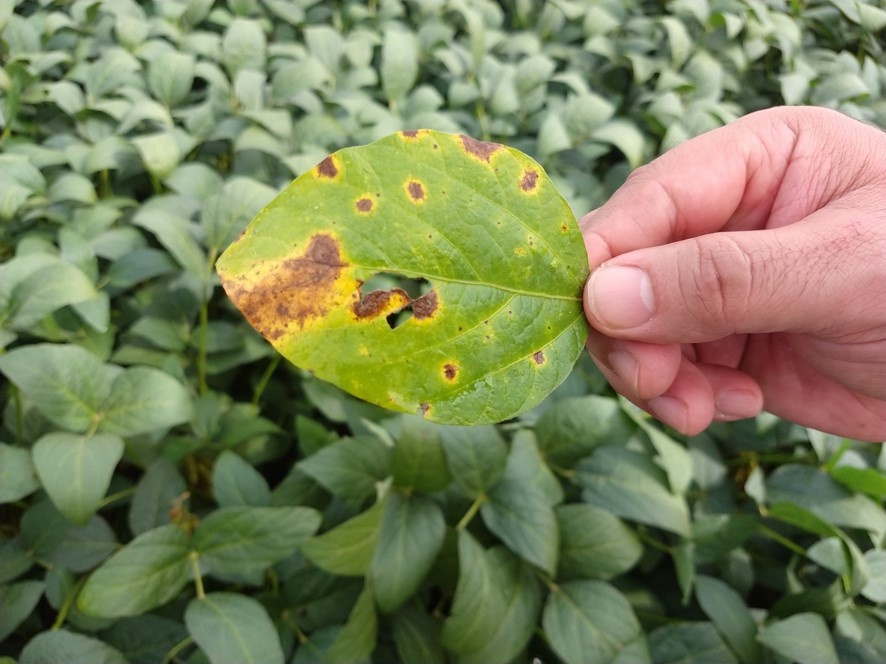 A mancha alvo, causada pelo fungo (Corynespora cassiicola) está presente na soja e principalmente no sistema soja-algodão.