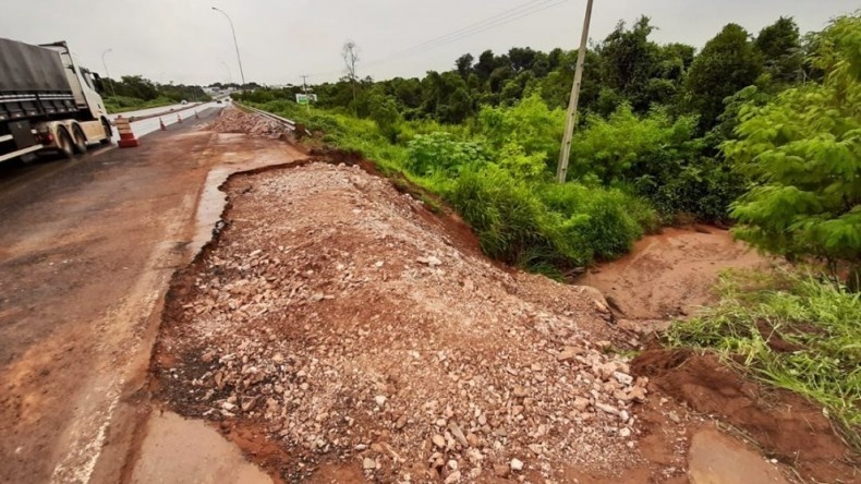 Está sendo realizada uma obra no km 755 da BR-163, em Sorriso, onde foi identificado um início de erosão em decorrência das chuvas intensas que têm caído no Norte do estado.