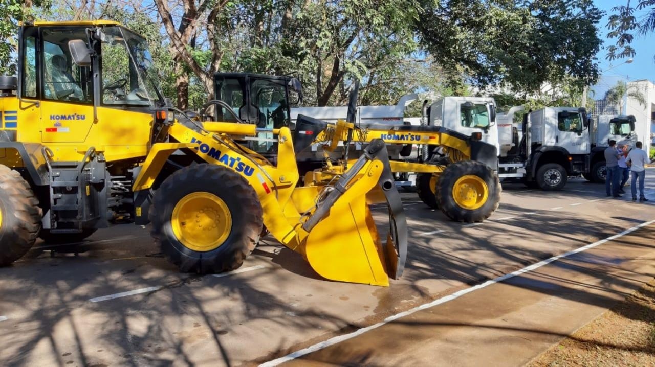 Foram entregues três caminhões caçamba basculante com capacidade para 14m³; uma motoniveladora GD655-5, uma pá carregadeira WA200-6; além de mais uma garra para coleta de resíduos e uma trituradora de galhos. O prefeito explica que a motoniveladora foi adquirida com recursos municipais provenientes do Fundo Estadual de Transporte e Habitação (Fethab), já a pá carregadeira, os caminhões, o triturador e a garra foram adquiridos com recursos próprios da Administração.