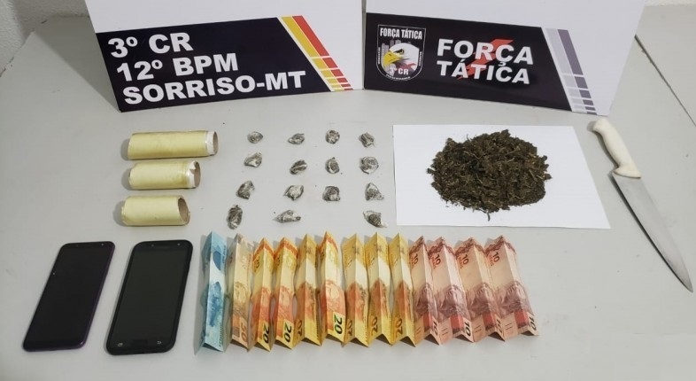 Um usuário de drogas e um traficante foram detidos pela Polícia Militar na noite de quarta (29) na travessa das Hortênsias, no Jardim Primavera, em Sorriso. Foram apreendidas 14 trouxinhas de maconha e uma porção maior do mesmo entorpecente.