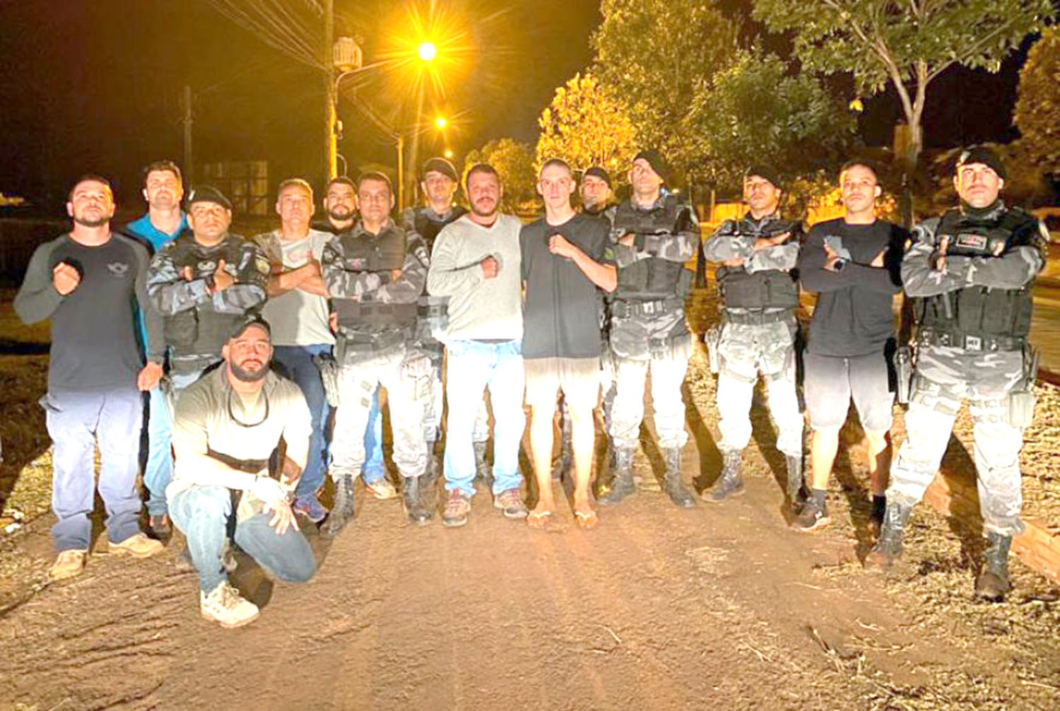 Policiais posam ao lado de Rafael Lorenzetti de cabelos raspados