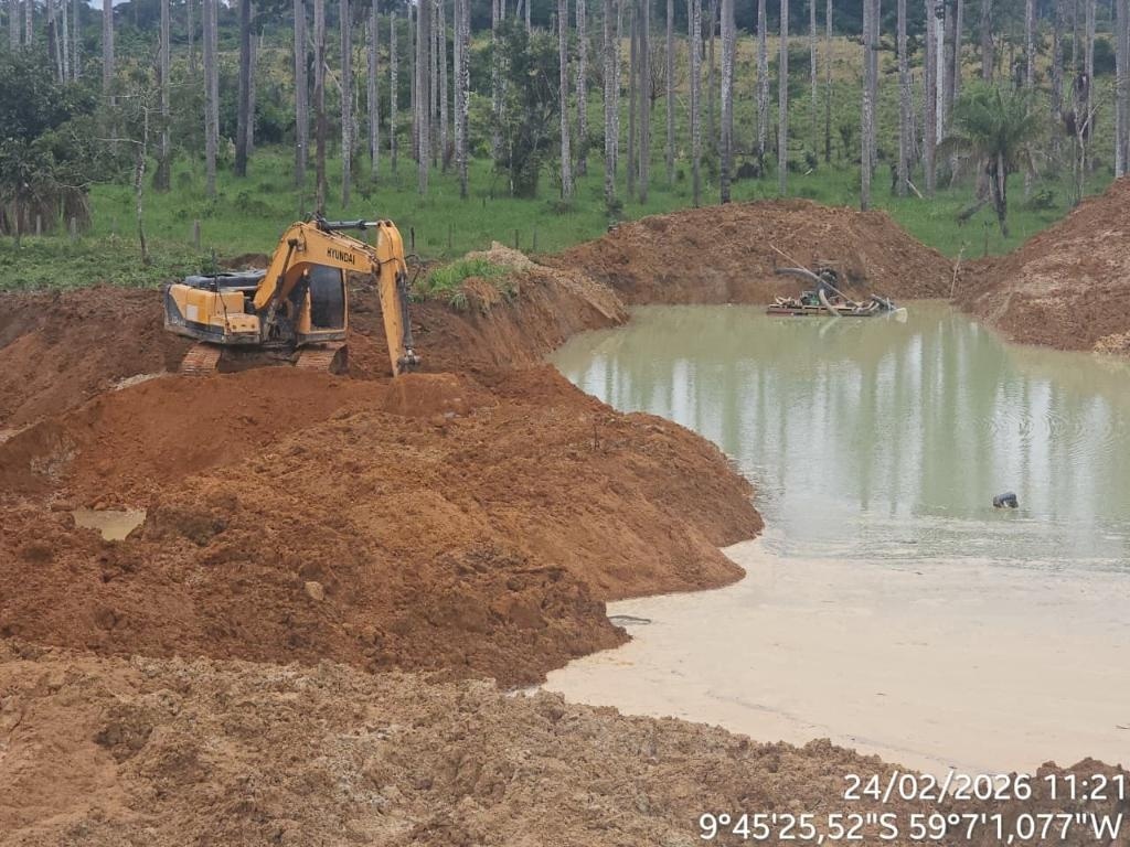 Equipes do Batalhão de Polícia Militar de Proteção Ambiental flagraram um garimpo irregular, em uma zona rural de Colniza. No local, as equipes localizaram quatro motores e uma escavadeira hidráulica, utilizadas na extração de minérios.