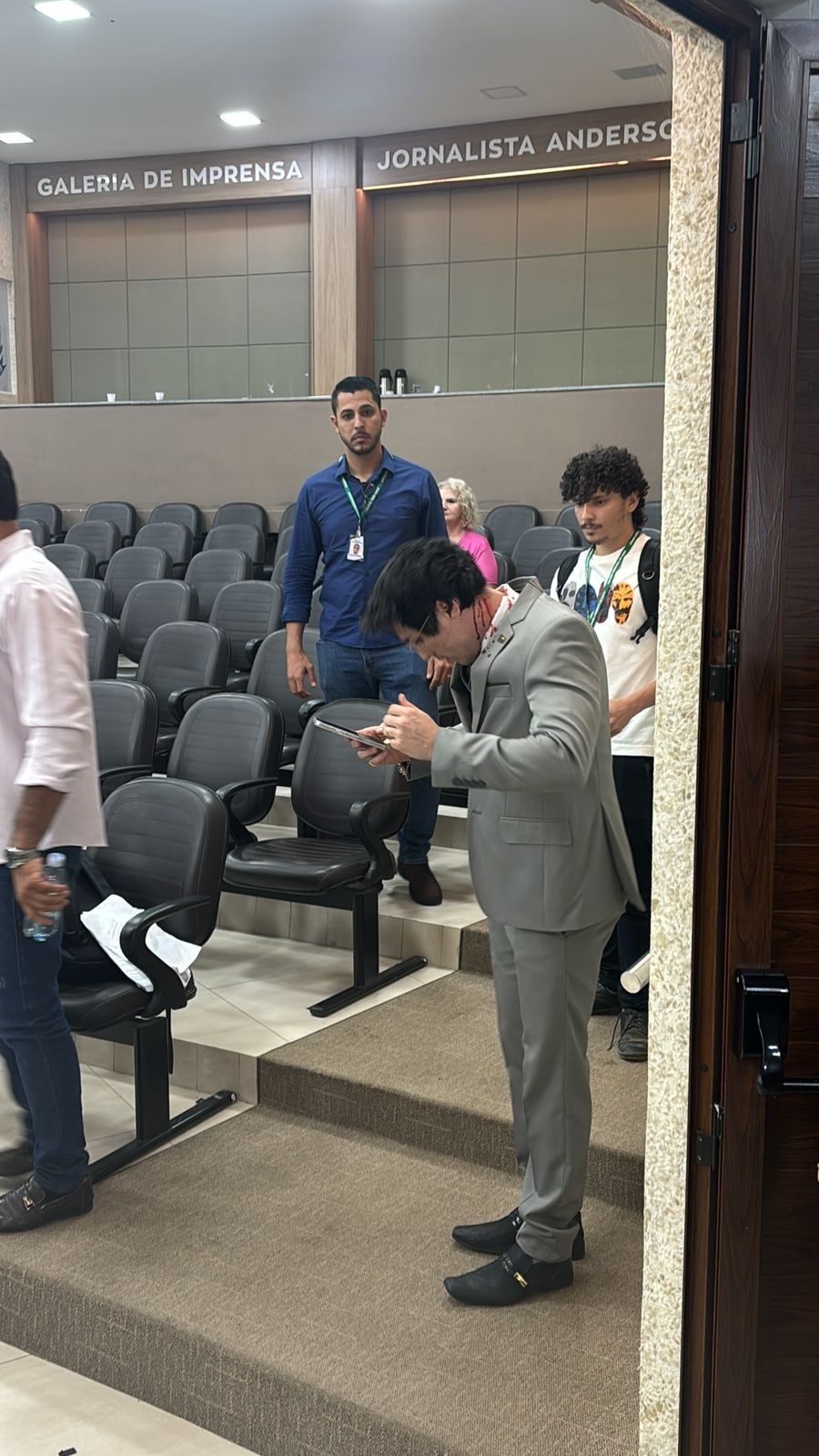 Depois da sessão encerrada, os dois se provocaram enquanto os jornalistas conversavam com outros vereadores, até que a agressão veio por parte de Trindade com uma espécie de bastão na cabaça do vereador, que começou a sangrar. O vereador saiu do local na viatura do Corpo de Bombeiros.