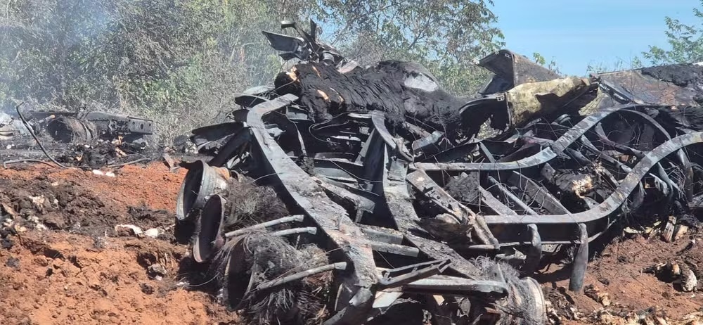 Com o impacto, o caminhão carregado de algodão explodiu e gerou um incêndio de grandes proporções. Imagens do local mostram os veículos completamente destruídos e as chamas já controladas. De acordo com a polícia, o motorista que transportava cimento, deixou o local após a batida, mas retornou pouco tempo depois.