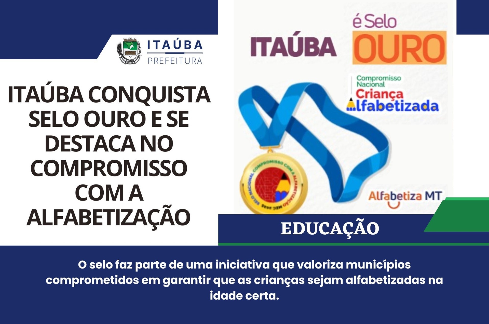 Itaúba alcançou um importante reconhecimento na área da educação ao conquistar o Selo Ouro de Compromisso com a alfabetização, certificação que evidencia o trabalho sério, responsável e dedicado desenvolvido pela rede municipal de ensino.