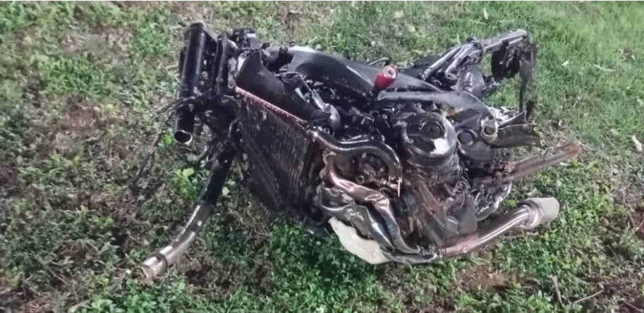 Moto destruída em colisão – Foto: Divulgação