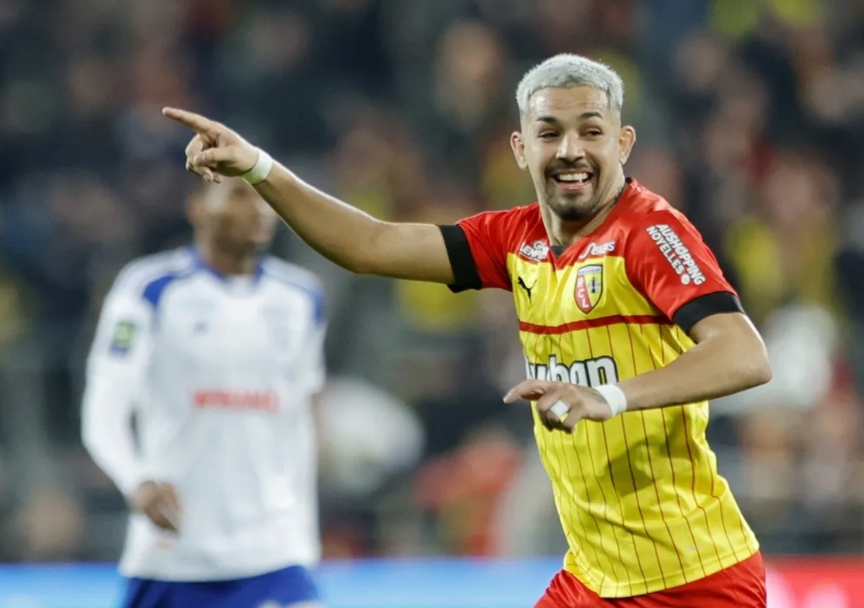 Facundo Medina comemora gol em Lens x Strasbourg pelo Campeonato Francês — Foto: REUTERS