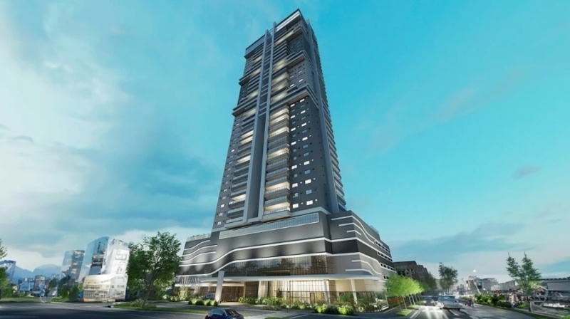A matéria jornalística começa destacando o investimento imobiliário na ordem de R$ 500 milhões, que promete dar origem a uma nova paisagem no município. O prédio que terá, na sua finalização 132 apartamentos, divididos em 42 andares com previsão de entre 164 m² e 766 m².