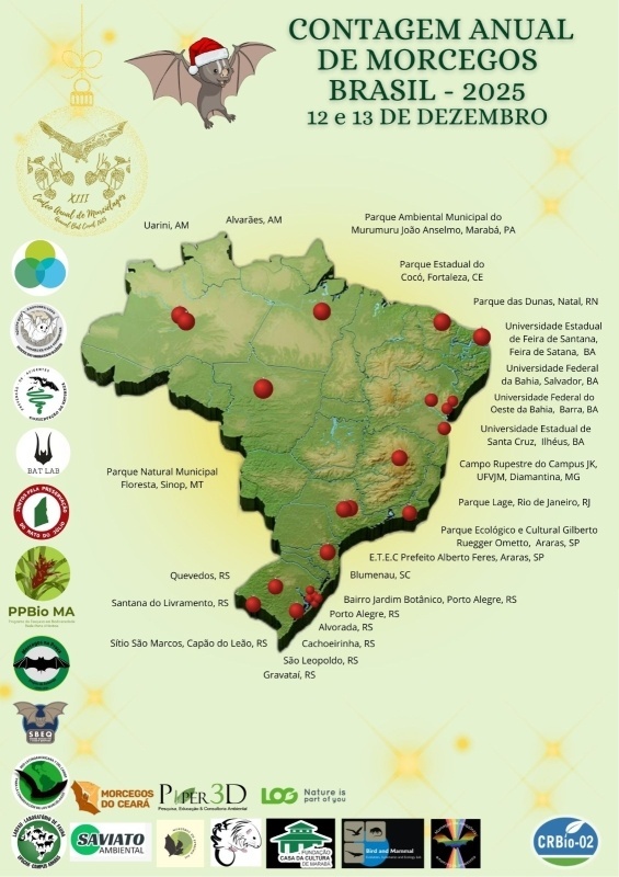A Contagem Anual de Morcegos mobilizou, simultaneamente, pesquisadores em várias localidades do Brasil, como Marabá/PA, Feira de Santana, Salvador/BA, o Parque Lage, no Rio de Janeiro, além de Sinop e outras cidades da América Latina e do Caribe. Participaram morcególogos, universidades e laboratórios de referência, como o BiMa-Lab, Labfau, UFB e UFOB, promovendo saídas de campo, coleta padronizada de dados, palestras, exposições e lives de divulgação científica abertas ao público.