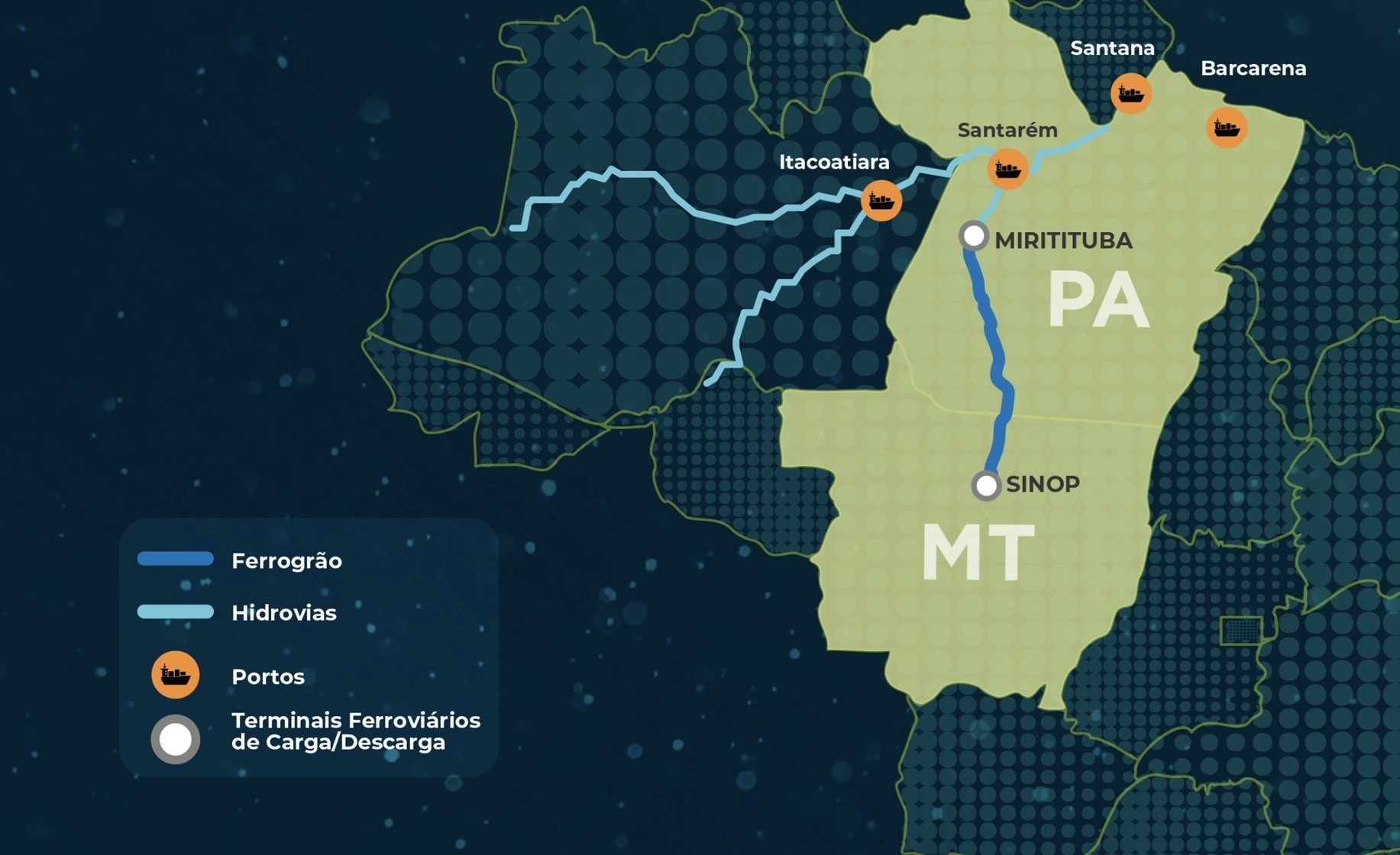 A Ferrogrão, com cerca de 930 km de extensão, é considerada estratégica para o escoamento da produção de grãos de Mato Grosso até o porto de Miritituba/PA, reduzindo custos logísticos e a pressão sobre a BR-163.