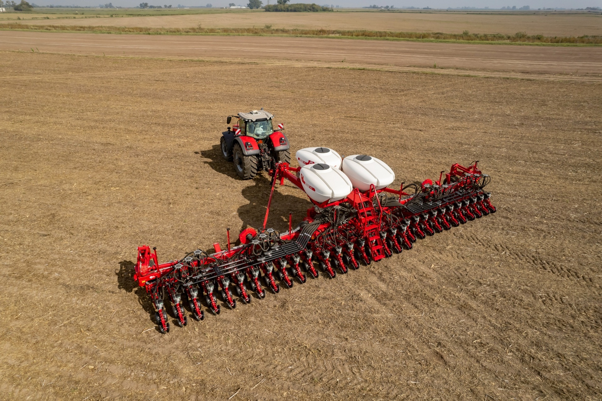 Já a Plantor 3.9, voltada a grandes operações, é a maior plantadeira da marca, com até 18 metros de largura de trabalho, caixas centrais de grande capacidade, autotransportável e compatibilidade com ISOBUS e semeadura pneumática.