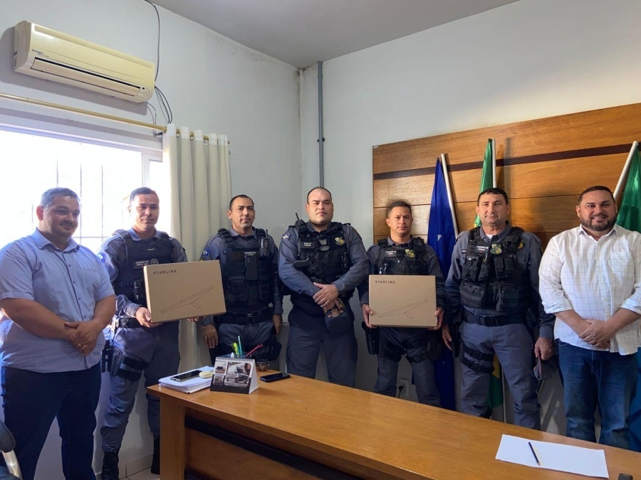A Prefeitura de General Carneiro realizou a entrega de dois kits de internet via satélite da Starlink para as equipes da Polícia Militar que atuam tanto na sede do município quanto no Distrito de Paredão Grande.